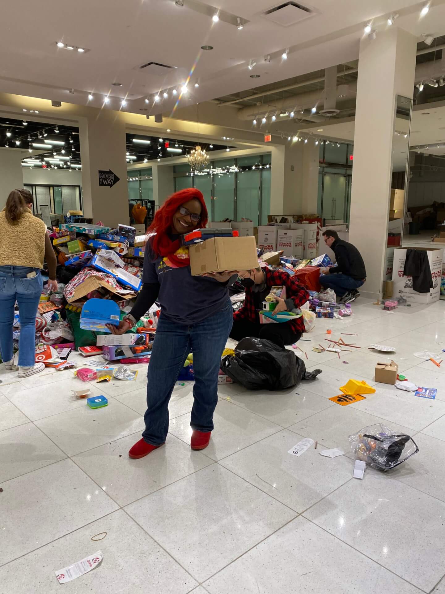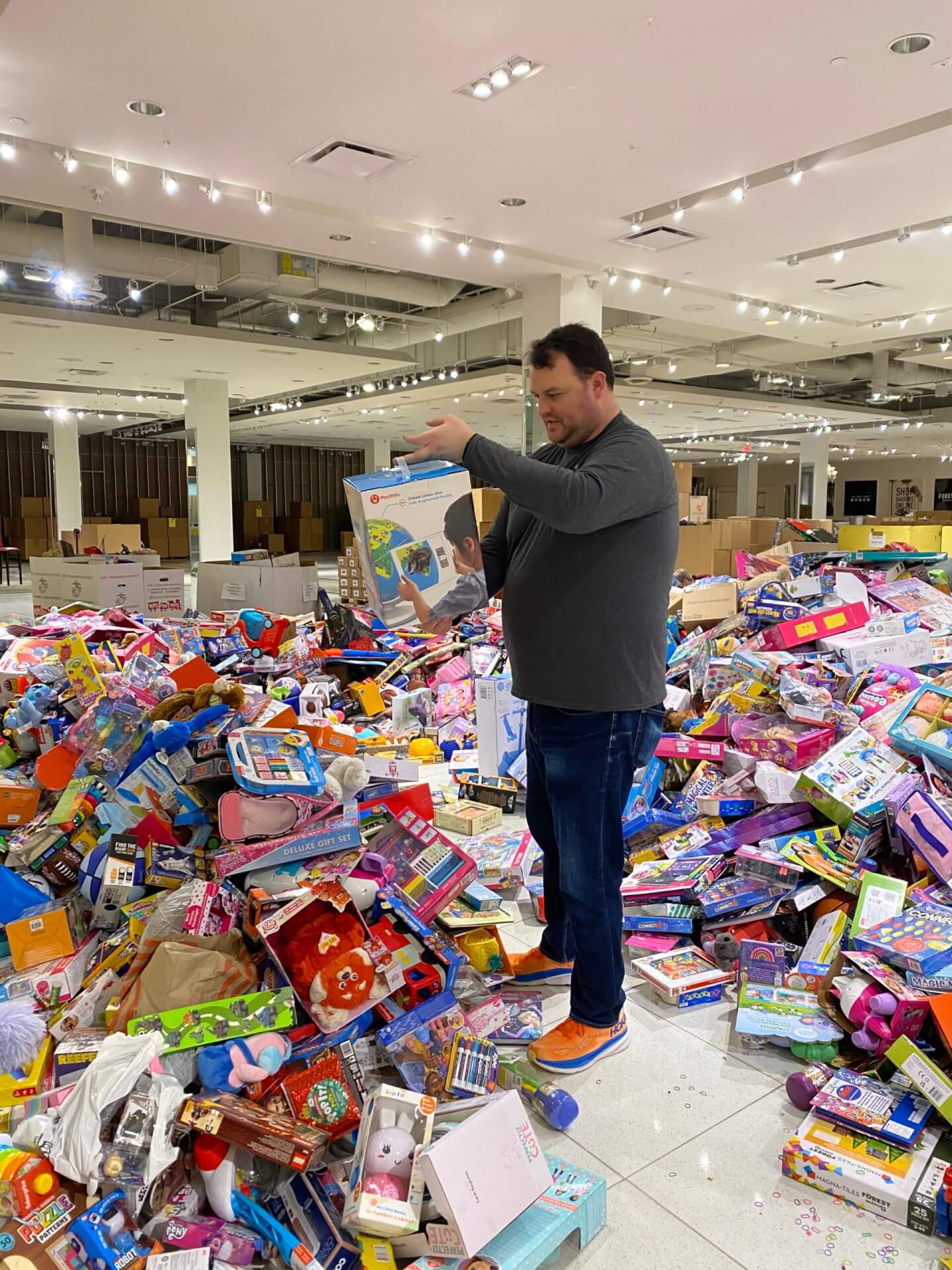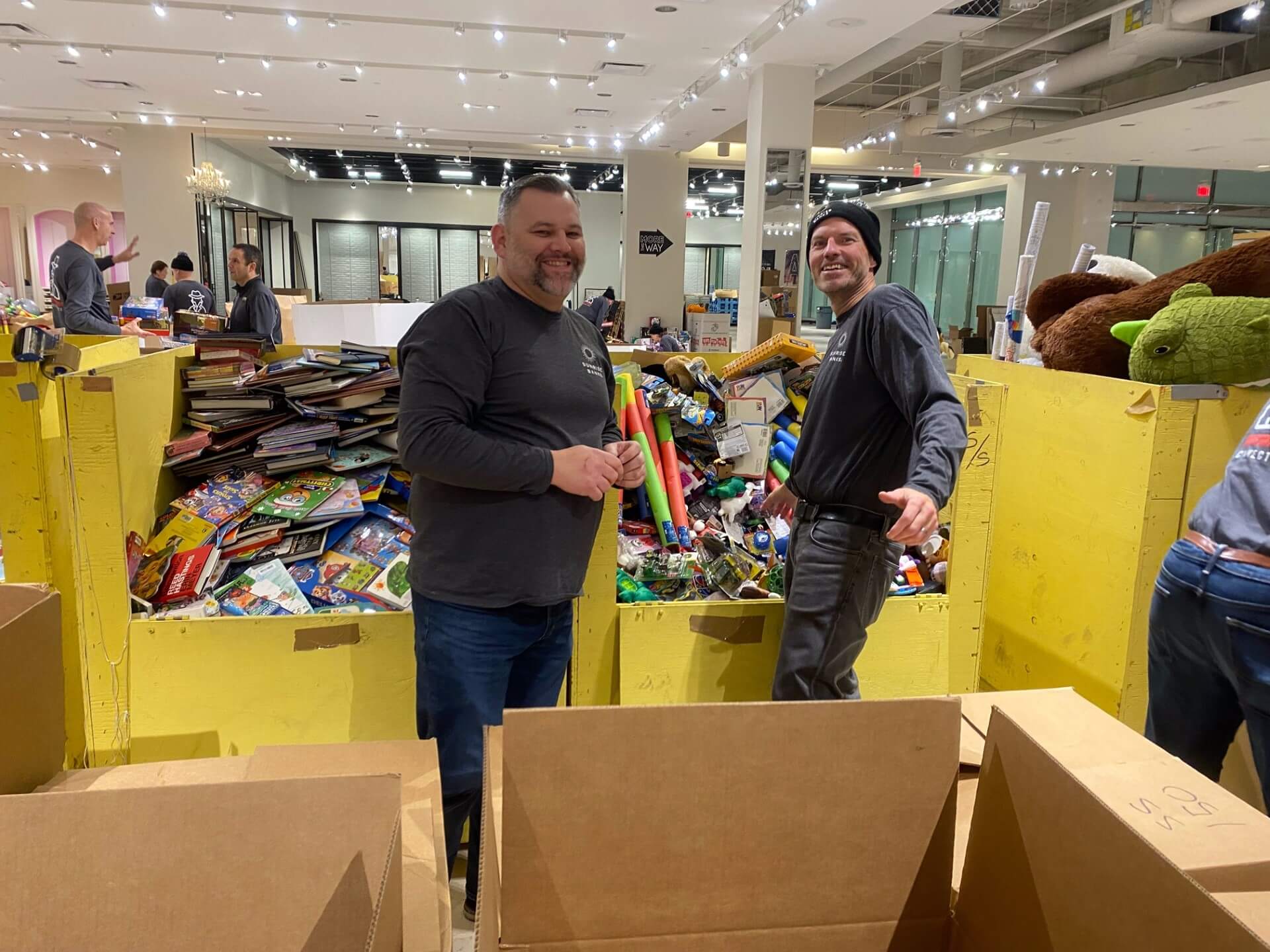 In addition to collecting toys and donations, several Sunrise Banks employees volunteered at the Toys for Tots warehouse at Mall of America. There, they sorted piles and piles of donated toys, then boxed them to send to organizations that distributed them to families in need.