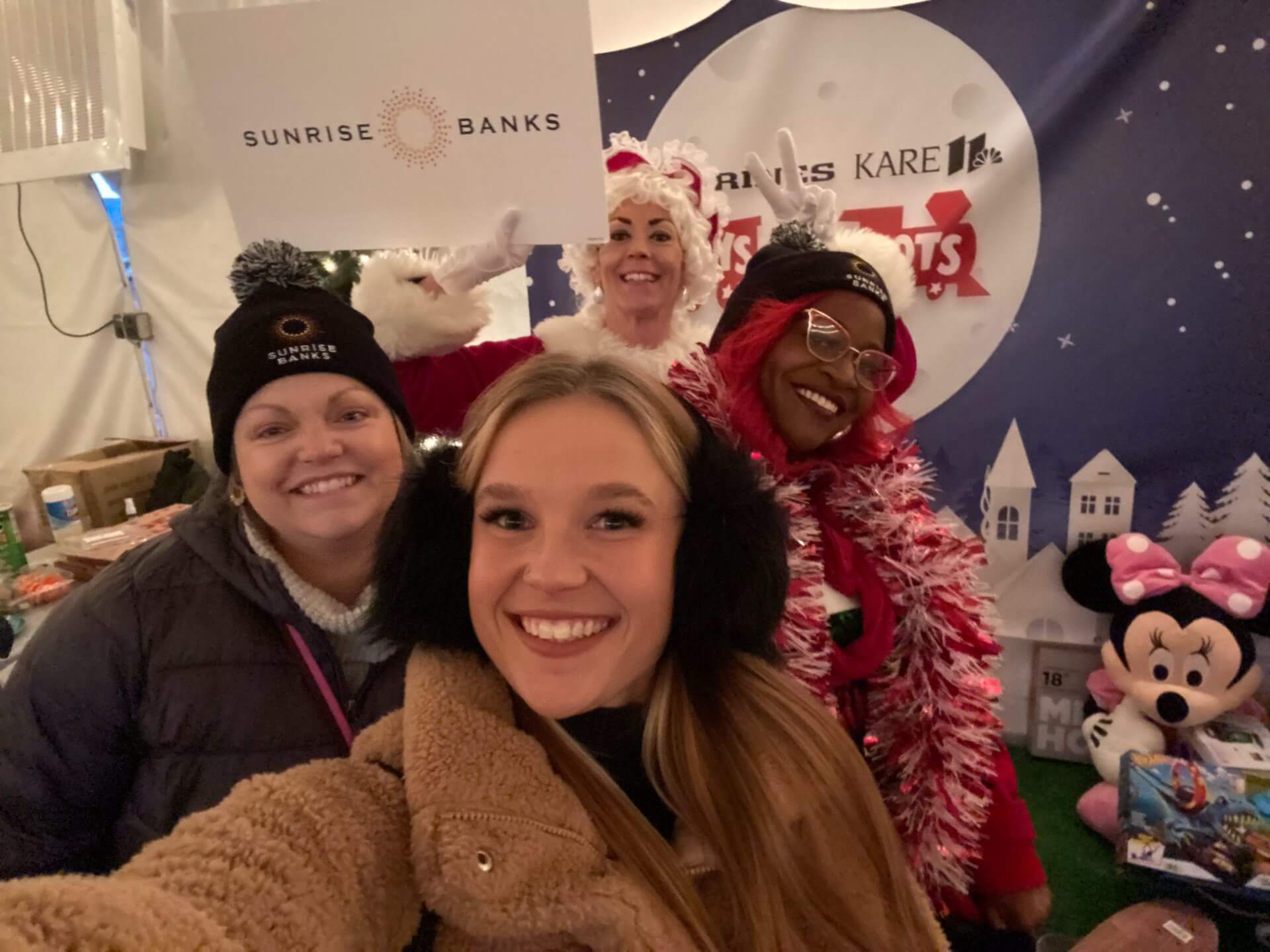 Sunrise Banks employees appeared live on KARE 11 News Off Site Link in mid-December to showcase the bank’s contributions to Toys for Tots.